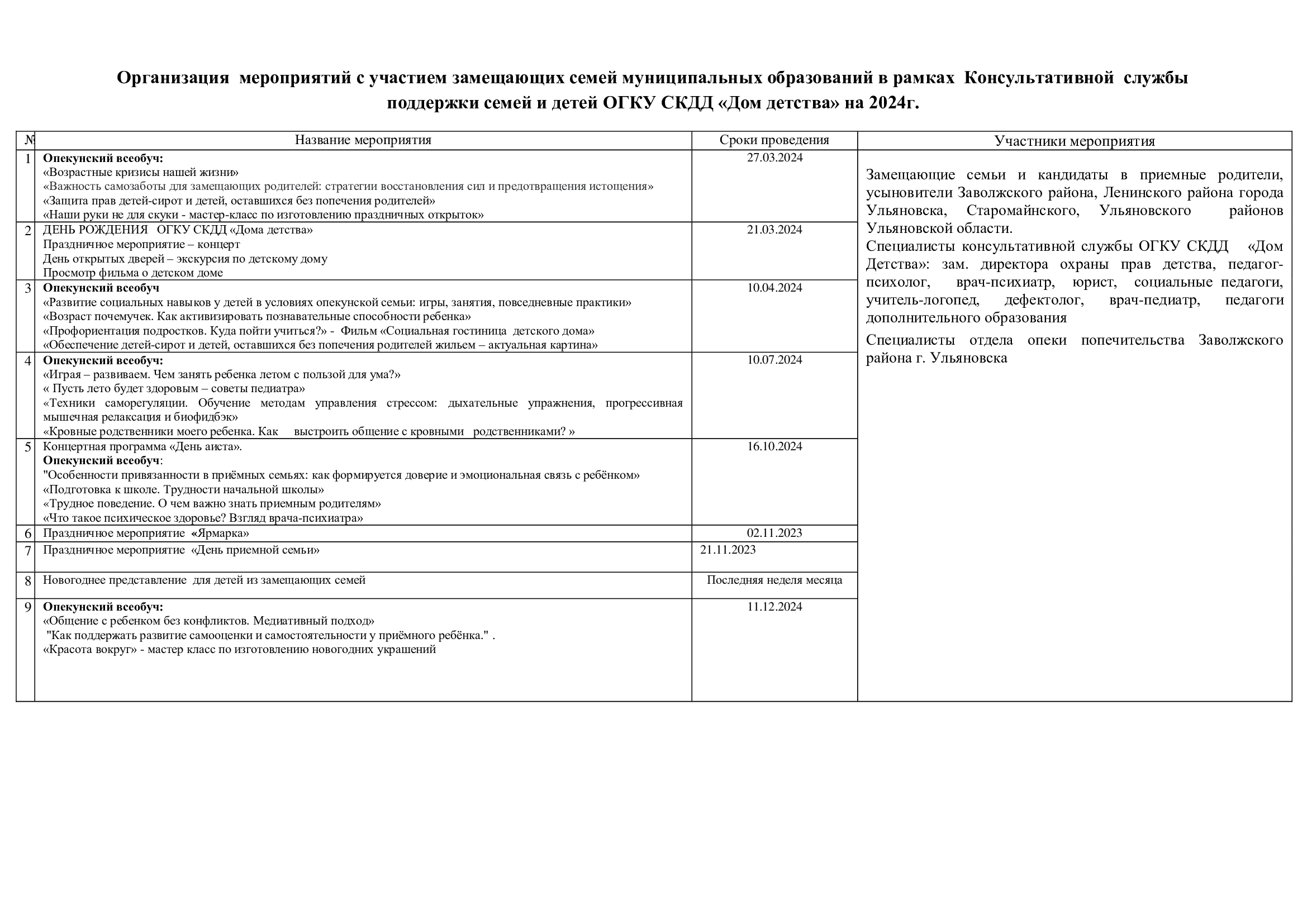План опекунских всеобучей на 2024 год