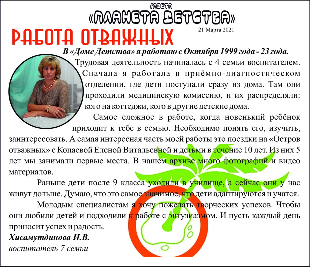 Двадцать пять лет её благородного труда радовали детей, трудовой коллектив и её саму, горячо любящую свою профессию.