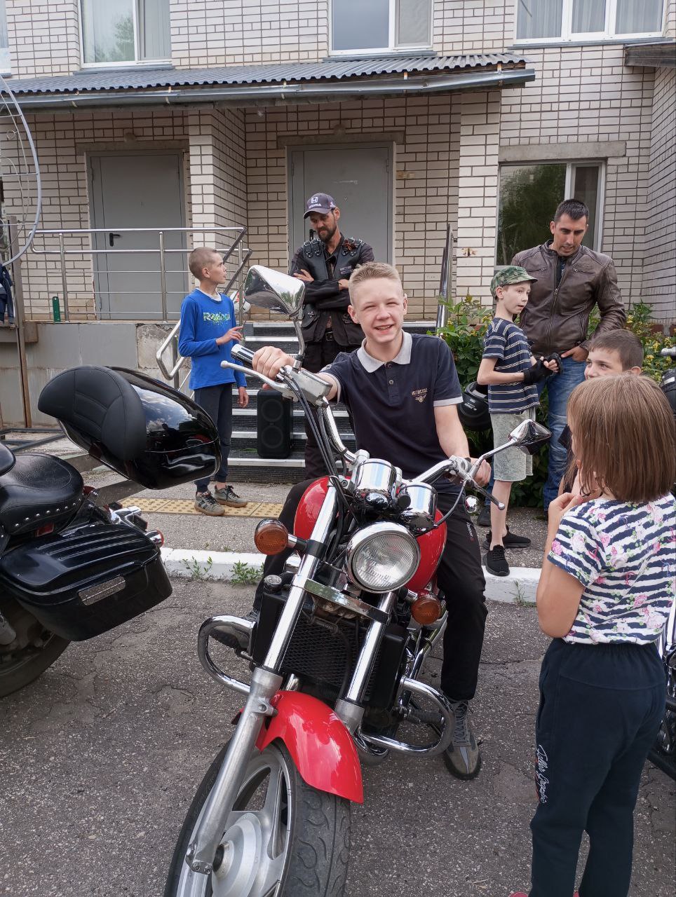 В «Доме детства» началась новая смена летнего лагеря, которая стартовала ярко и необычно — с участием байкеров, приехавших на своих мотоциклах поздравить ребят с продолжением отдыха.