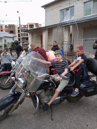 Всадники на железных конях показали свои мотоциклы, рассказали ребятам о безопасности на дороге и разрешили примерить шлемы, вызвав у ребят множество положительных эмоций и восторга.
