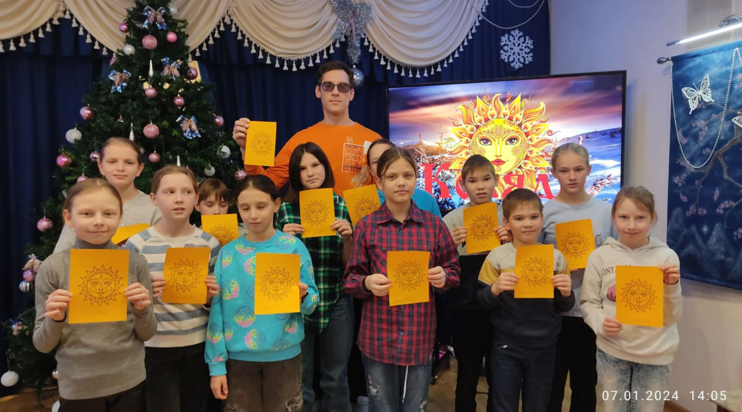 Очередная встреча детей была посвящена теме Рождения нового Солнца - Божича Коляды, который 21-22 Декабря сменяет Корочуна на 3 день после зимнего солнцестояния. И по окончании 12 дней Рождественских святок (6 Января) наступает Водокрес.