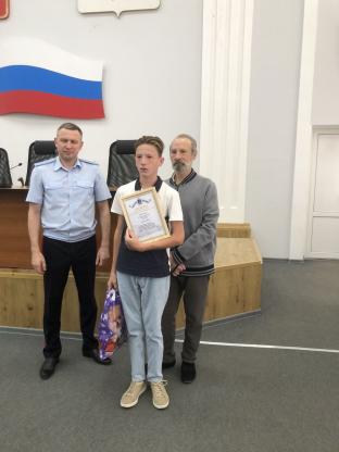 В УМВД России по Ульяновской области генерал-майор Петрушин М.Ю. наградил грамотой и ценным подарком воспитанника нашего детского дома Ивана З. за занятое 2 место в конкурсе детского творчества «Полицейский Дядя Стёпа».
